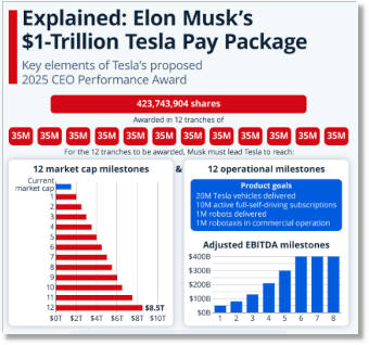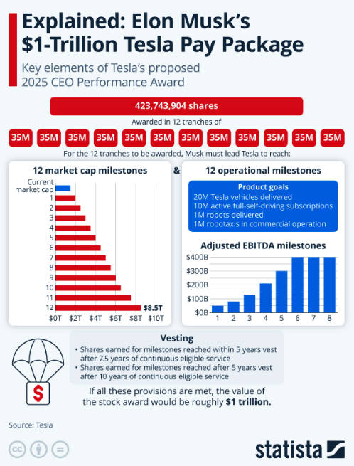 Click to enlargeExplained: Elon Musk's $1-Trillion Tesla Pay Package | Statista | 11/06/25 | graph |