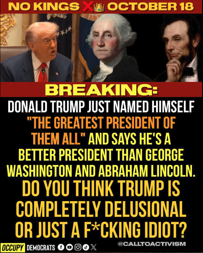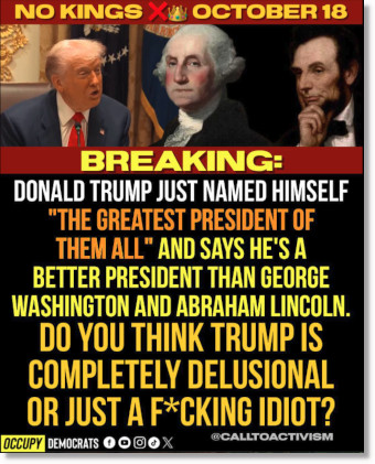 Rump dropping his poop on 'No Kings Day' protestersWashington Week with The Atlantic full episode, Oct. 17, 2025 | Washington Week PBS | 10/18/25 | 26:46 | https://www.youtube.com/watch?v=lY4pyzXnIZk Rump dropping his poop on 'No Kings Day' protesters