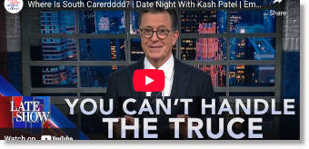 Where Is South Carerdddd? | Date Night With Kash Patel | Embracing "67" | Andrew Is A Prince No More | Shephen Colbert | 10/30/25 | 11:10