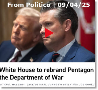 White House to rebrand Pentagon the Department of War | Politico | 09/04/25 | article