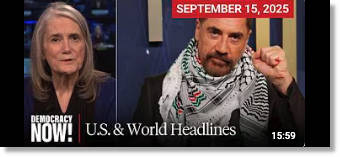 Top U.S. & World Headlines - Sep 15, 2025 | 09/15/25 | 15:58 Gaza Doctor Pleads with World to Stop Israel's Genocide | DN | 09/15/25 | 15:20 "The Martyrdom of Charlie Kirk": How the Right Is Weaponizing Kirk's Killing | DN | 09/15/25 | 14:51