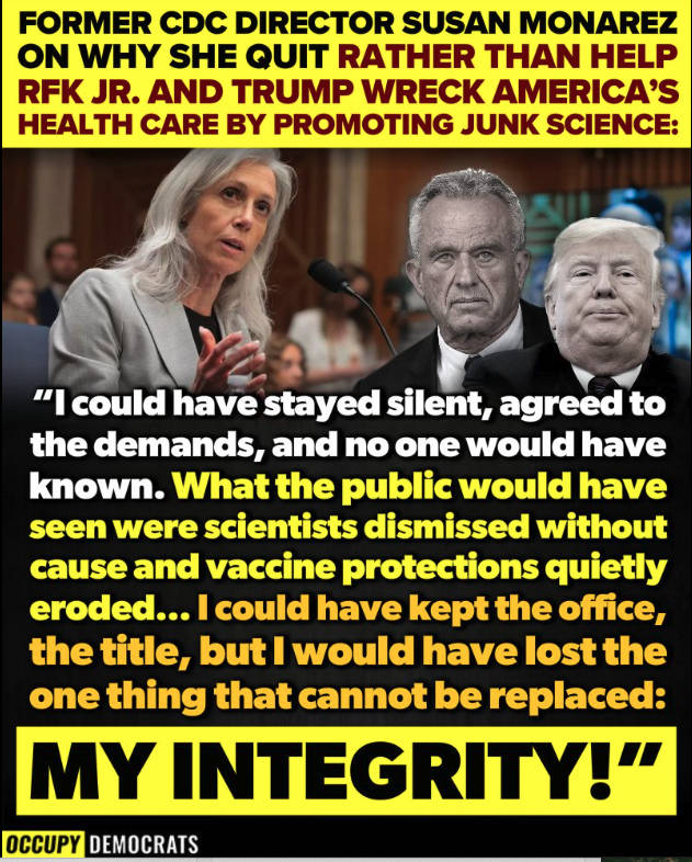 Ex-CDC director: RFK Jr. planning September vaccine changes aIt's not clear how Kennedy envisions changing the schedule, which is a long-established system for approving and recommending vaccinations. Monarez said she did not get into "substance" of how Kennedy's handpicked CDC advisory panel would recommend changes. The Advisory Committee on Immunization Practices will meet on Thursday and Friday to discuss who should get COVID-19, Hepatitis B, MMR vaccines. Monarez said she was fired in part because she refused Kennedy's request to "pre-approve" the advisory panel's changes to vaccine recommendations. ... Read more Charlie Kirk in his own words: 'prowling Blacks' and 'the great replacement strategy' Charlie Kirk, the far-right commentator and ally of Donald Trump, was killed on Wednesday doing what he was known for throughout his career - making incendiary and often racist and sexist comments to large audiences. If it was current and controversial in US politics, chances are that Kirk was talking about it. On his podcasts, and on the podcasts of friends and adversaries, and especially on college campuses, where he would go to debate students, Kirk spent much of his adult life defending and articulating a worldview aligned with Trump and the Maga movement. ... Read more Is Charlie Kirk's Killer A Leftist? Is Charlie Kirk's Killer A Leftist? | Leeja Miller | 09/16/25 | 29:40Trump on safeguarding our kids from school shootings Trump on safeguarding our kids from school shootings | | | 1:00
