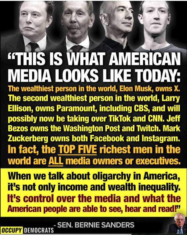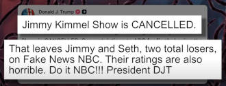 Media's MAGA makeover Trump-friendly billionaires are consolidating control over American media, steering legacy brands and social platforms in a new conservative direction. Why it matters: The media landscape of 2016 is unrecognizable. Once dominated by critics of President Trump, today's fragmented ecosystem is increasingly controlled - or threatened - by forces aligned with the White House. Driving the news: ABC pulled Jimmy Kimmel off air "indefinitely" on Wednesday in response to the late-night host's comments about Charlie Kirk's assassination. The extraordinary move came after Federal Communications Commission chair Brendan Carr warned ABC that it could face fines or license revocations if it did not "operate in the public interest." Trump celebrated Kimmel's removal - just as he did CBS's decision to cancel Stephen Colbert's show - and called for NBC to take action against remaining late-night hosts Seth Meyers and Jimmy Fallon. ... ... ... Read more ABC pulls Jimmy Kimmel after Charlie Kirk comments ABC is pulling Jimmy Kimmel after a wave of criticism over the late night host's recent comments in the wake of Charlie Kirk's killing. Why it matters: Kimmel is among the most high-profile people to face professional consequences for criticizing the conservative activist killed last week. What they're saying: An ABC spokesperson said in a statement to Axios, "Jimmy Kimmel Live will be pre-empted indefinitely." ... Read more Rump kills off 90% of Americans Rump kills off 90% of Americans (or manybe the World) | SC | 09/15/25 | 12:36Trump Raging at Epstein Ruining U.K. Visit Trump Raging at Epstein Ruining U.K. Visit: Michael Wolff | Inside Trump's Head | The Daily Beast | 09/17/25 | 41:05We warned you about Project 2025 We warned you about Project 2025. Well, it’s here... | MSNBC | 09/15/25 | 12:36 |